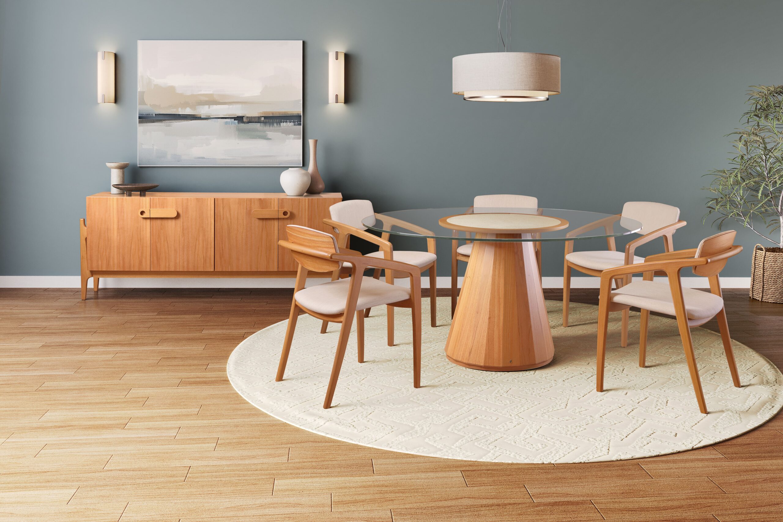 Mesa Jasmim com Cadeira Lotus e Buffet Jasmim